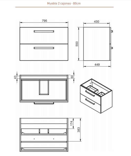 Bathroom Set VEGA Furniture + Countertop 80 COLORS Avio VisoBath
