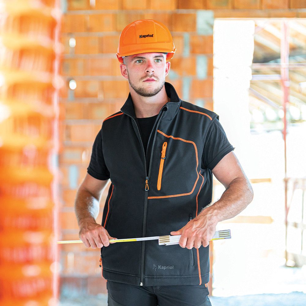 Chaleco de hombre con tres prácticos bolsillos delanteros con fuelle y un bolsillo con cremallera. Las sisas elásticas y el sistema de ajuste de la anchura del chaleco Kapriol garantizan un buen ajuste para un máximo confort.