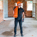 Chaleco de trabajo multibolsillos con inserciones reflectantes en los bolsillos y la espalda para garantizar la visibilidad incluso de noche.