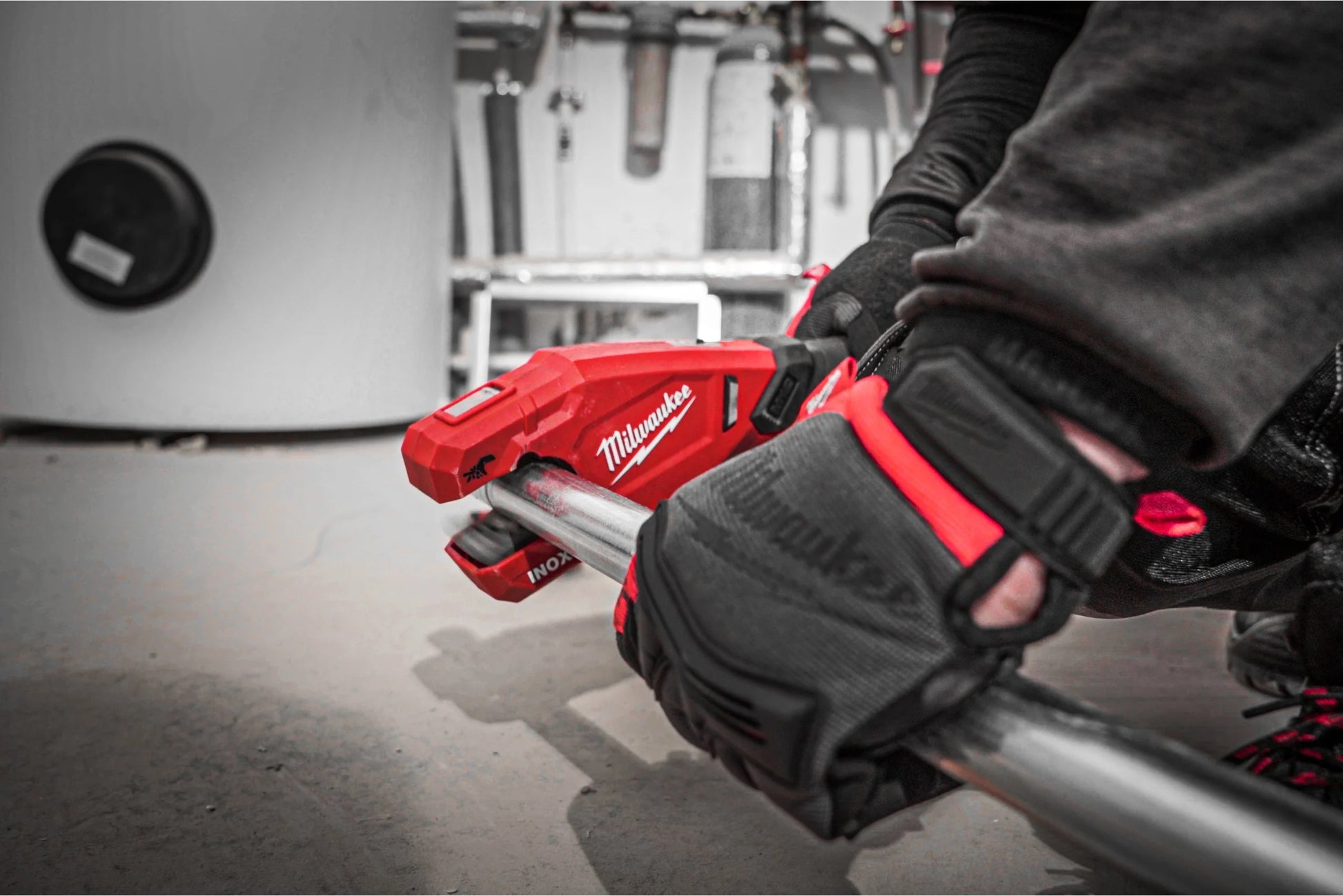La cortadora de tubo de INOX subcompacta M12™ RAPTOR™ es la primera cortadora de tubos de 12V capaz de cortar tubo instalado de acero inoxidable, acero al carbono y cobre, desde 12mm hasta 28mm.