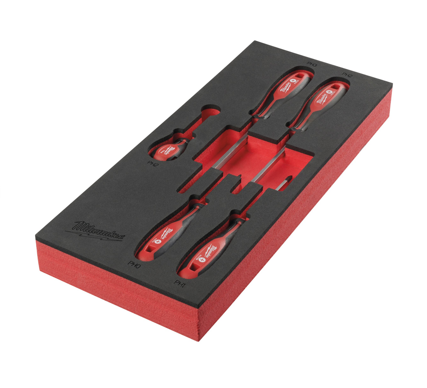 Espuma con 5 destornilladores con cómoda empuñadura tri-lobe optimizada para la máxima comodidad del usuario y aplicaciones de par elevado.