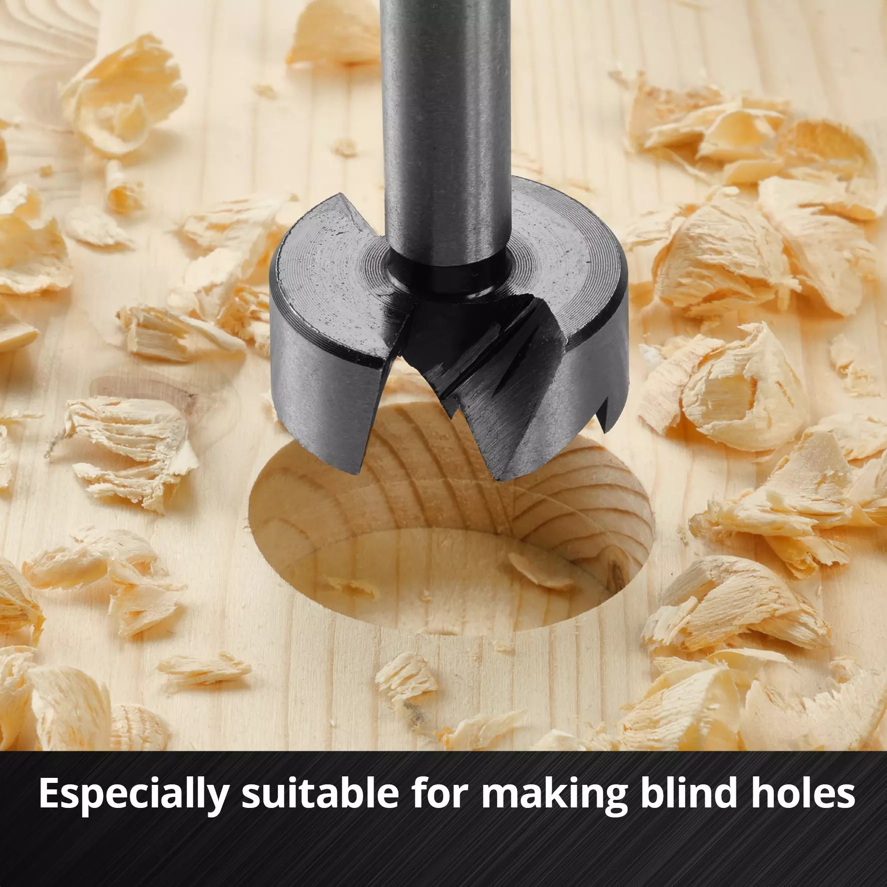 El Juego de 5 brocas de bisagra Einhell 49706003 es un conjunto de brocas tipo Forstner diseñado para realizar perforaciones precisas y limpias en madera, especialmente útil en la instalación de bisagras de cazoleta y otros trabajos de carpintería que requieren orificios de gran diámetro.