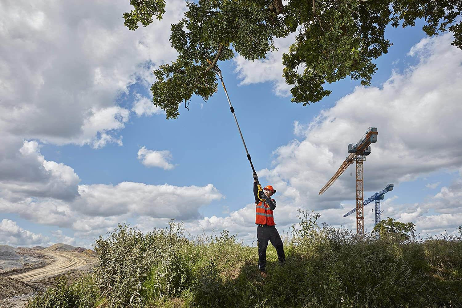 Podadora de Altura a batería 18 V de Dewalt. Dispone de un peso y equilibrio optimizados para un funcionamiento cómodo y seguro.