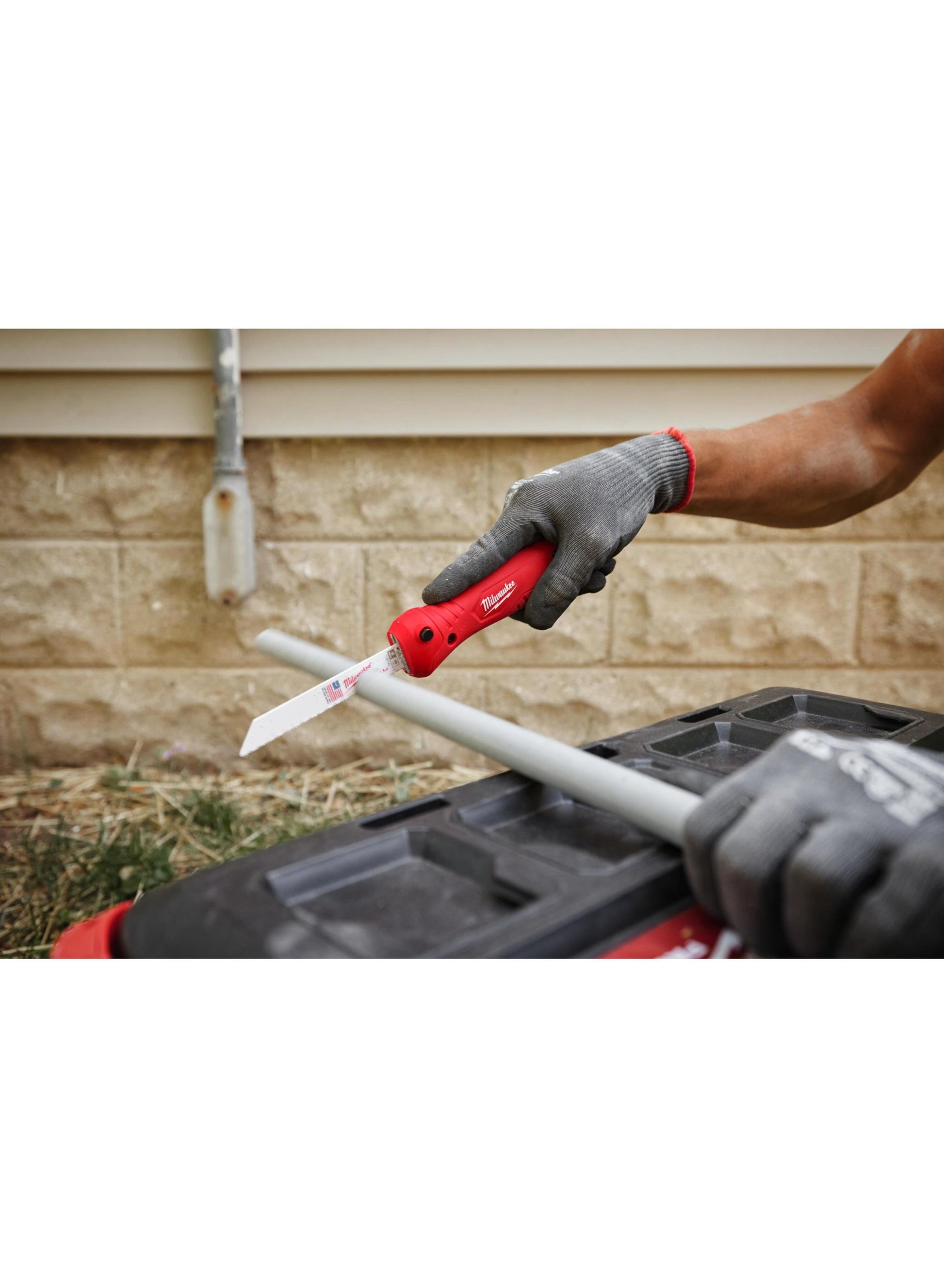 • Hoja plegable que mantiene los dientes de la hoja protegidos y permite un transporte más cómodo y seguro.