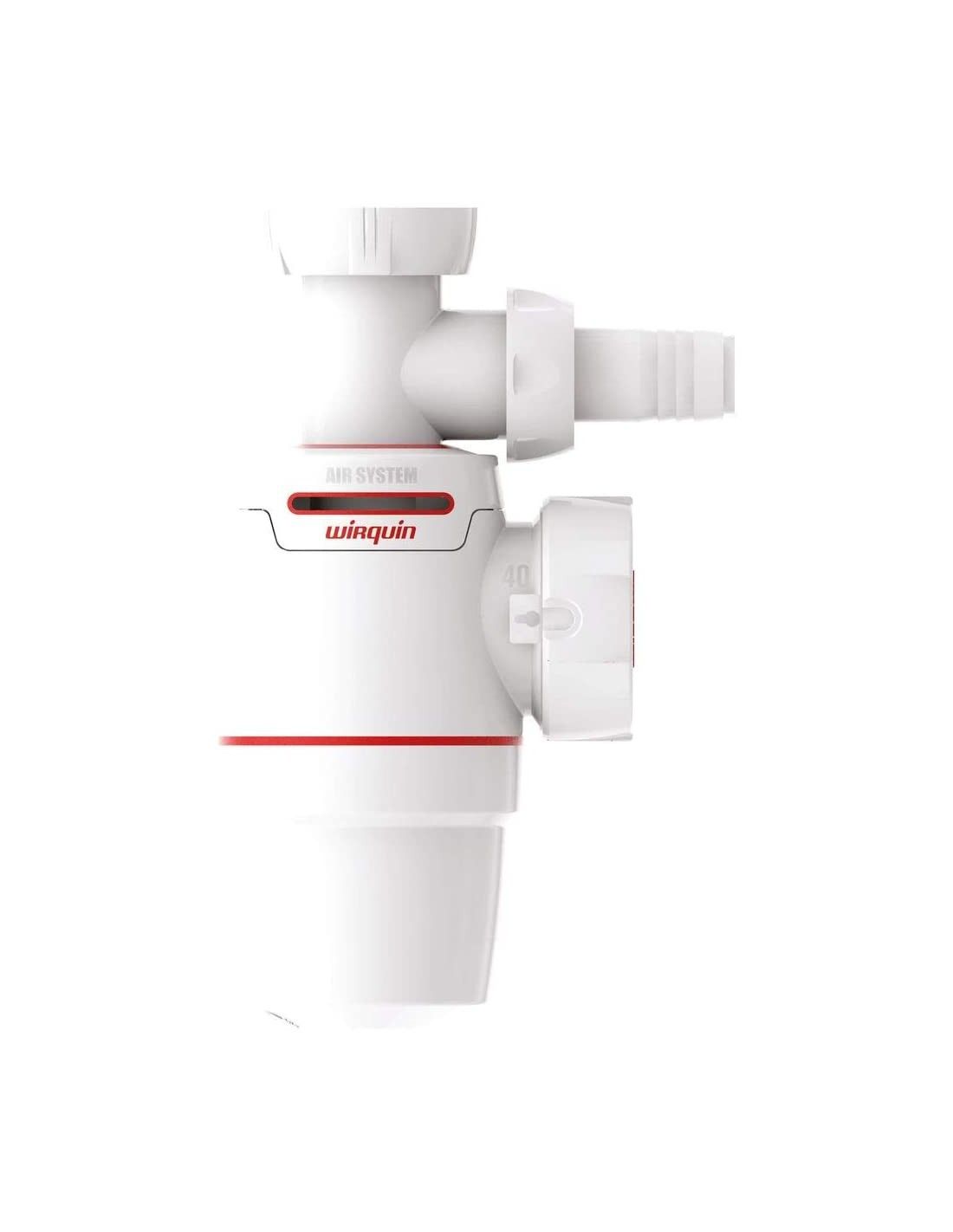 Sifón 1 seno Wirquin Neo Air con toma D.40, esta función innovadora sustituye al antivaciado tradicional y permite evitar ruidos y malos olores.