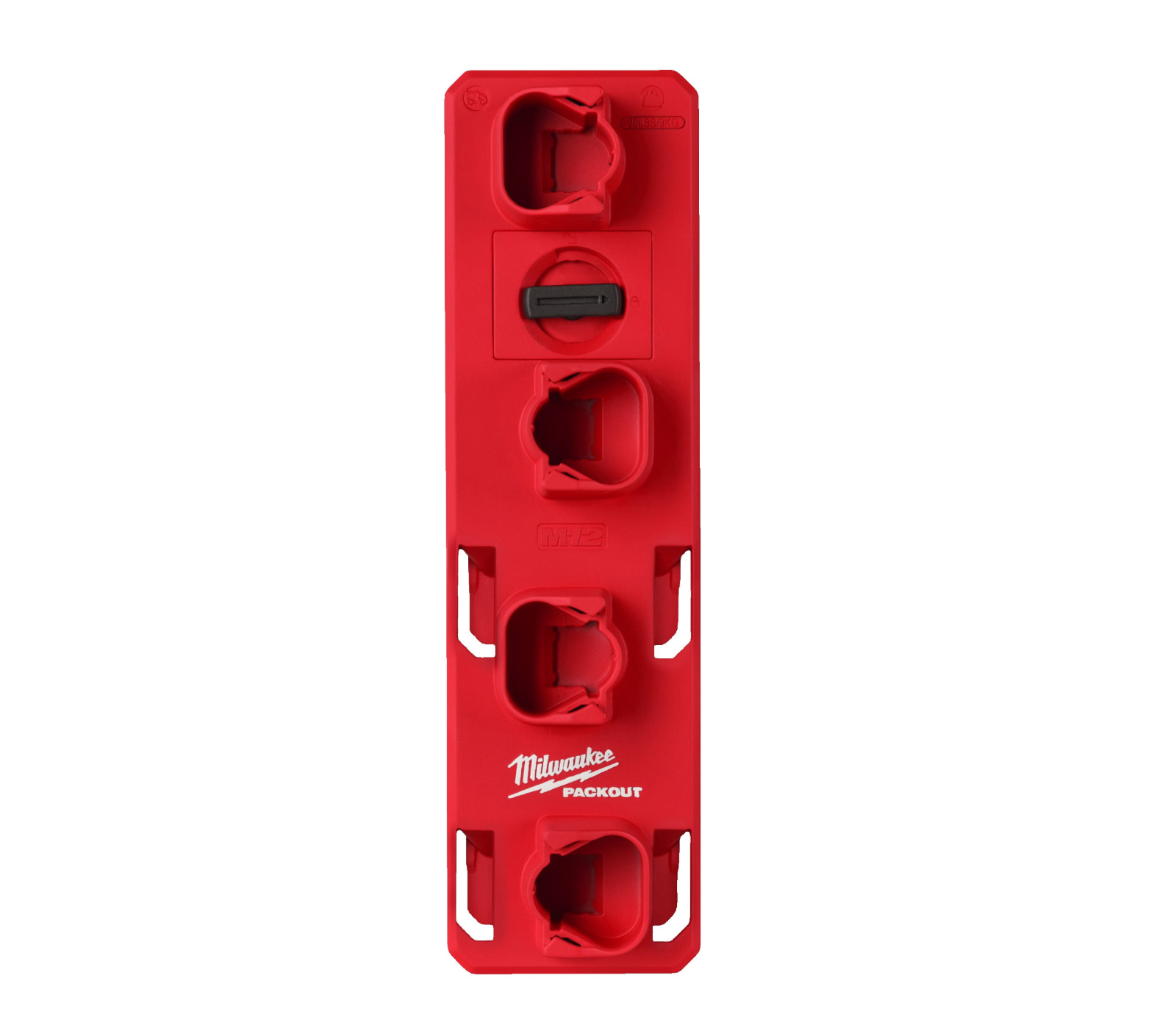 El Soporte para baterías M12™ PACKOUT™ de Milwaukee es un accesorio del sistema modular PACKOUT™ diseñado para organizar y almacenar baterías M12 de forma segura, accesible y eficiente dentro de tu taller o área de trabajo. Se fija fácilmente a las placas de montaje del sistema PACKOUT™ mediante un mecanismo de “clic y bloqueo” para ofrecer un almacenamiento compacto y ordenado.