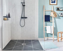 Desagüe de ducha a suelo con membrana, de solo 40 mm de altura, salida orientable según la posición del tubo. Sin fugas, sellado óptimo y más fácil de lograr entre el taco y la regla: placa de plástico ABS. Sin olores ascendentes ni acumulación de agua: la membrana de silicona reemplaza el sello de agua, el caudal rápido alcanza los 30 l/min. Fácil limpieza: Membrana de silicona extraíble, accesible desde arriba Filtro de pelo extraíble. Rápido y fácil de instalar en un espacio reducido.