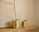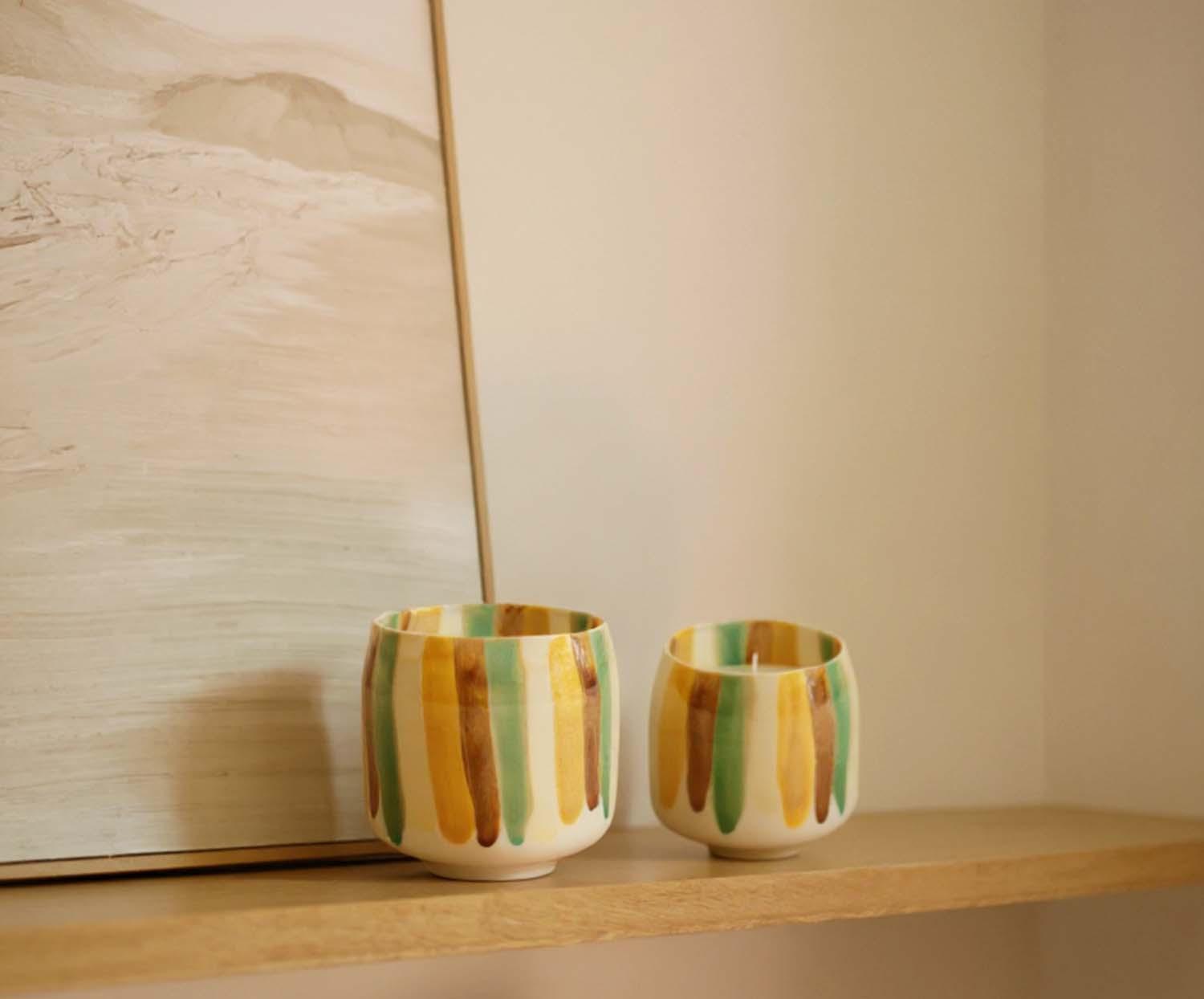 Elegantes velas aromáticas de cerámica de Andrea House con fragancia de vainilla, diseñadas para crear un ambiente cálido y acogedor en el hogar. Su recipiente de cerámica actúa como elemento decorativo reutilizable una vez consumida la vela, sumando estilo y funcionalidad a cualquier estancia.
