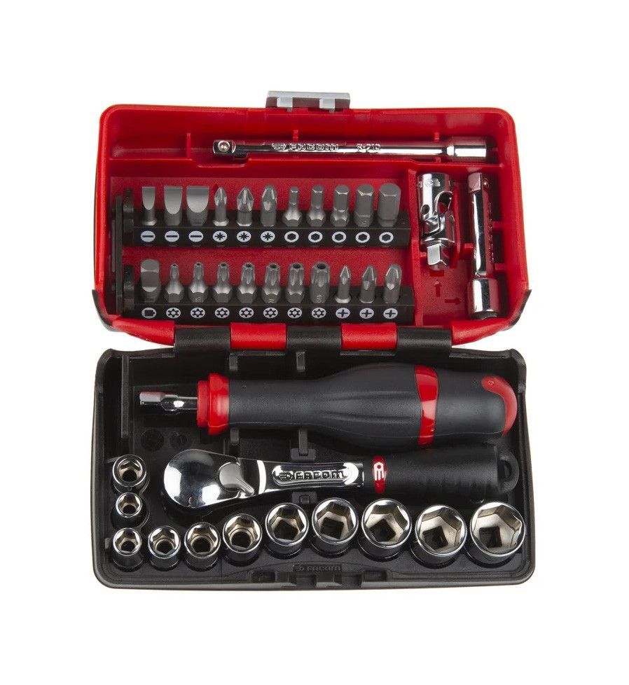 This ultra-compact and portable set of glasses from Facom guarantees great durability and a long service life. It has been designed with professionals in mind and is manufactured from the highest quality steel. The ergonomic handles offer comfortable, safe operation and the durable plastic case makes for easy transport and storage. This tool set is suitable for a wide range of applications, with a large selection of easy-to-identify screwdriver bits from Symbol. It is ideal for fast and versatile work and can be carried with you.