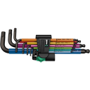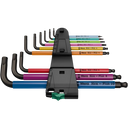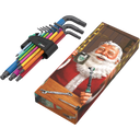 The 950/9 Hex-Plus Multicolour 1 is a set of nine high-quality offset Allen keys for internal hex screws. These keys feature a colorful plastic sleeve for easy size identification and improved grip, even in cold conditions. Their BlackLaser surface treatment provides exceptional corrosion protection and a long service life.