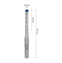 - Drills reinforced concrete with a solid carbide head with 4 cutting edges