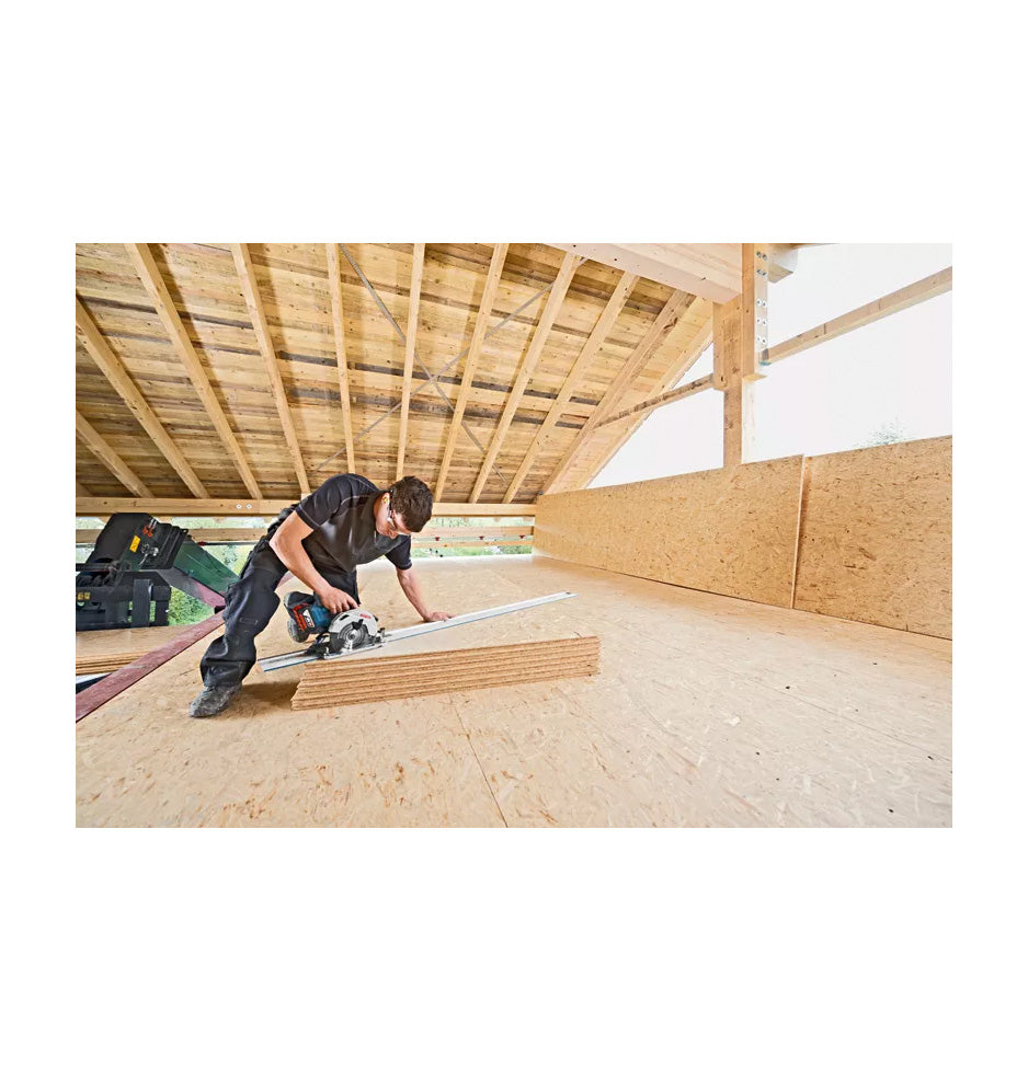 The GKS 18V-57 G Professional cuts solid wood and wood-based products such as OSB, plywood or MDF. It is compatible with all Bosch Professional 18V batteries and chargers (Professional 18V System).
