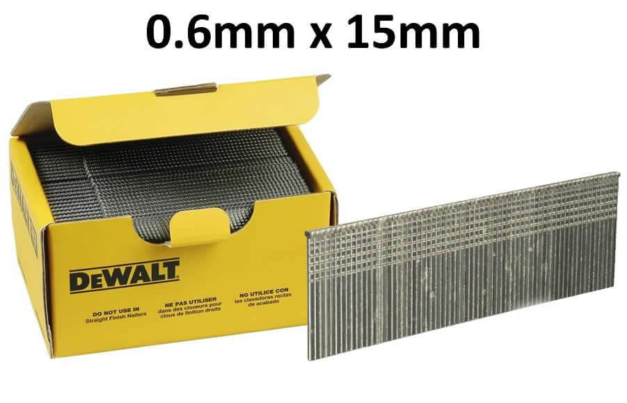 Mini headless pin for finishing nailer 0.6 mm x 15 mm from the Dewalt brand reference DNBHL2315Z. It is served with a box of 20,000 units.