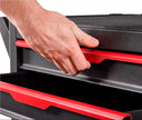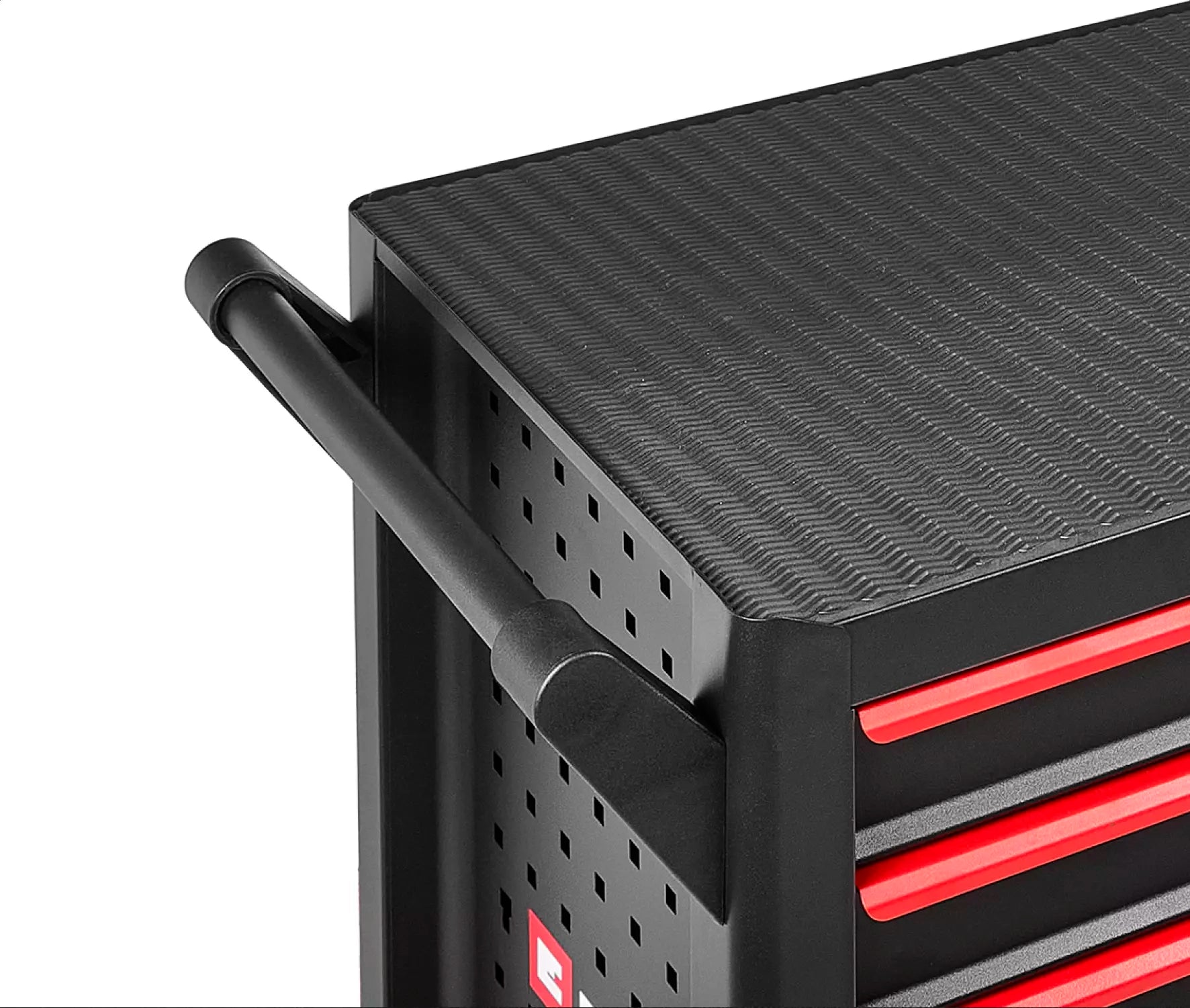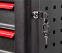 Sturdy, mobile storage cart, ideal for organizing tools and accessories in home or professional workshops. Presented without tools, it offers a solid black structure with red accents, with six drawers for maximum versatility.