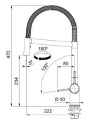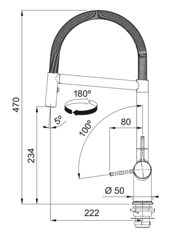 Unlimited functionality. The maneuverability of the pipe is essential to cover the largest possible work space. The extendable spout helps for certain operations. Full 360° rotation faucet and retractable spout.
