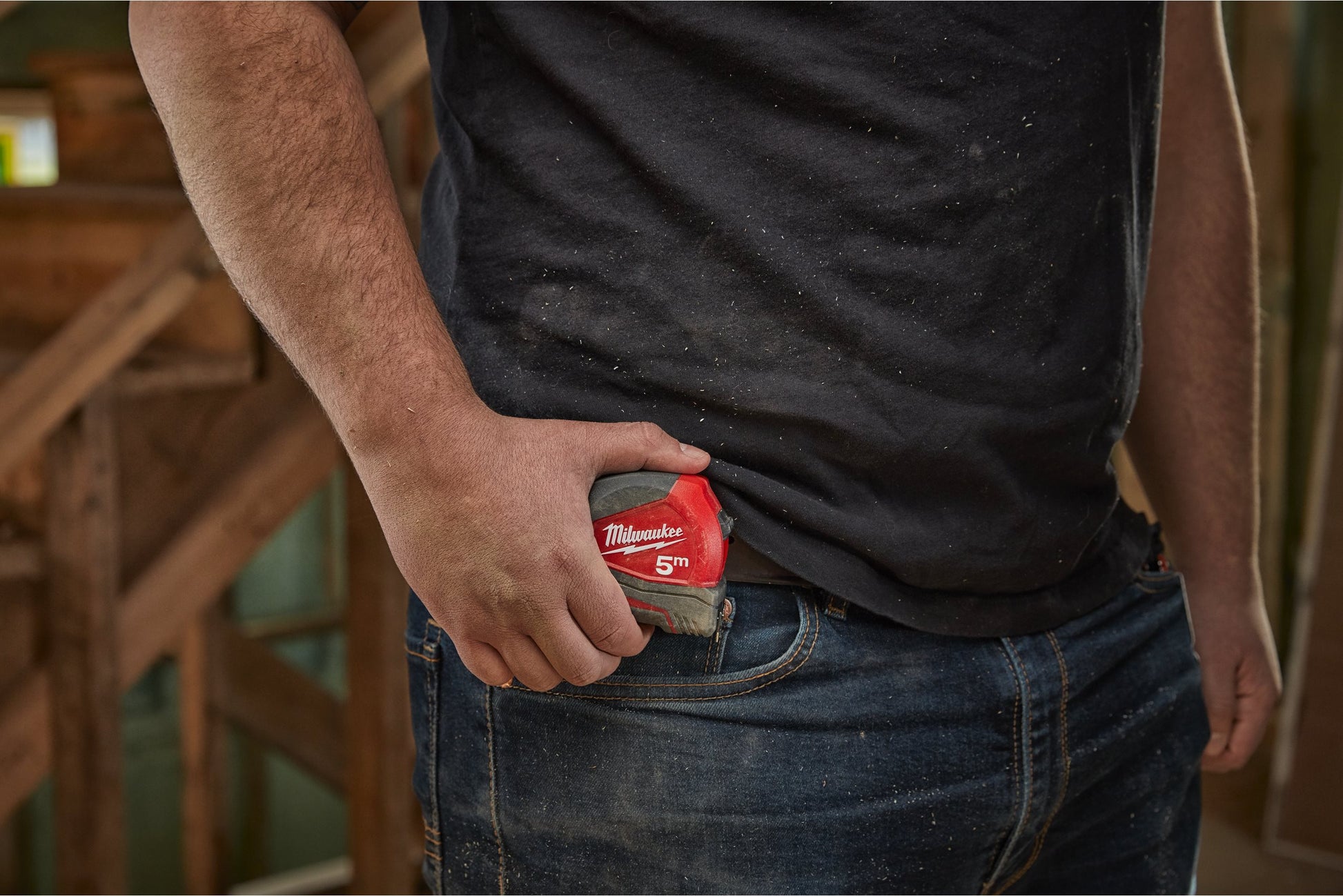 Tape measure with improved ergonomics and a more compact and manageable size. Resistant to daily use on the construction site.