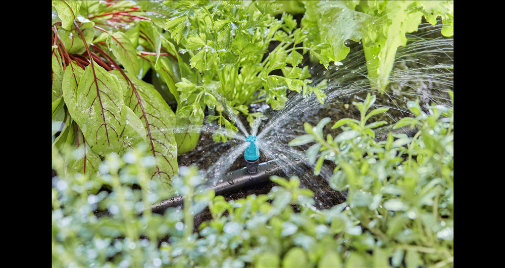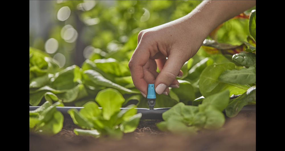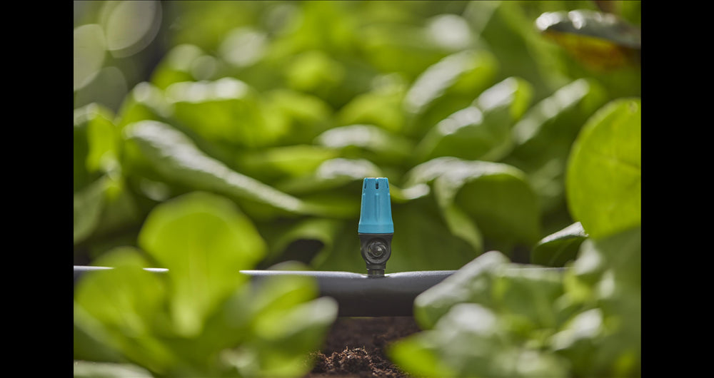 Use the Gardena Small Area Sprinkler to water small flower beds or planting areas with salads and seedlings. Before watering your plants, you can adjust the watering radius of the Micro-Drip-System component individually between 10 and 40 cm.
