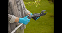 - The clearly visible LED indicator integrated into the ergonomic handle shows the current battery charge status during work. A fully charged battery offers up to 400 cuts.