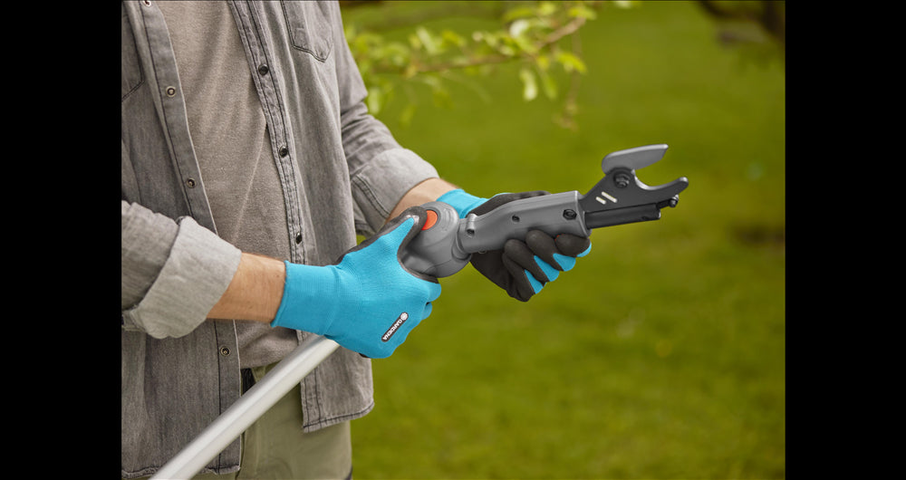 - The original Gardena hardened steel blades are made in Germany, have a non-stick coating and are precision ground. They guarantee a clean and smooth cut in fresh wood up to 28 mm in diameter.