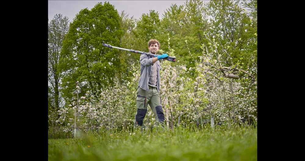 The Highcut 360/28 V P4A telescopic branch lopper set with battery and charger is ready for use. It will help you easily power from the ground to great heights. Thanks to the integrated extension tube, it has a length of up to 3.6 meters, allowing you to reach a total height of up to 5 meters when pruning.