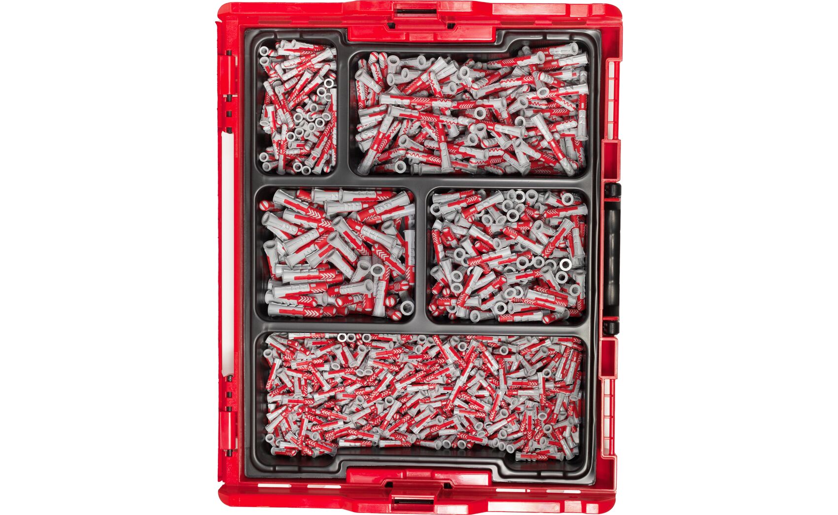 The L-BOXX DuoPower is the ultimate professional solution for storing and transporting wall anchors. This robust case contains an assortment of 910 DuoPower anchors in their most common sizes. Thanks to its click system, the box is fully compatible with the Bosch L-BOXX system, facilitating its transport and integration into commercial vehicle shelving.