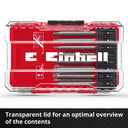 - Practical storage box allows for organized storage and makes it easy to quickly identify bits thanks to its transparent lid. The self-locking clip closure ensures a secure hold during transport and storage.