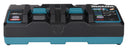 Dual-port rapid charger that is capable of charging two Makita XGT Li-Ion batteries at once as fast as the DC40RA charges one battery, Charges one battery in 22 - 50 minutes, depending on battery capacity.