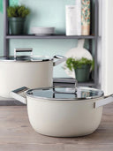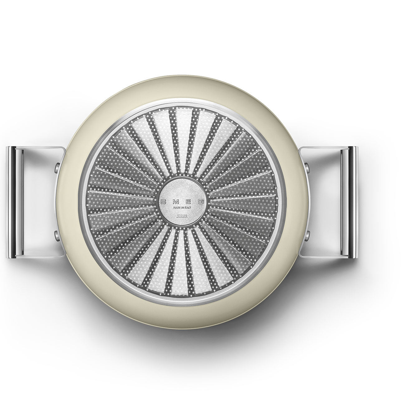 Set of 5 pieces of Smeg kitchenware ideal to complete the kitchen, this set consists of: 26 cm pot with a capacity of 7.7 l, 24 cm pot with a capacity of 4.6 l, 20 cm saucepan with A capacity of 2.7 l, 28 cm satin and 24 cm non-stick matte cream finish are designed for all types of preparations and recipes, they are perfect depending on the style and quality of food being cooked.