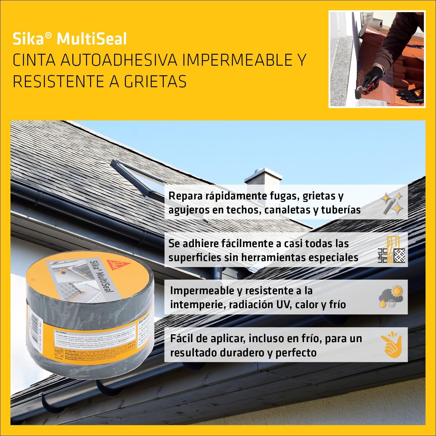Sika's SIKA MULTISEAL waterproofing tape is a self-adhesive bituminous tape, made of modified bitumen, with a lacquered aluminum foil on one side and a removable siliconized plastic film on the other.